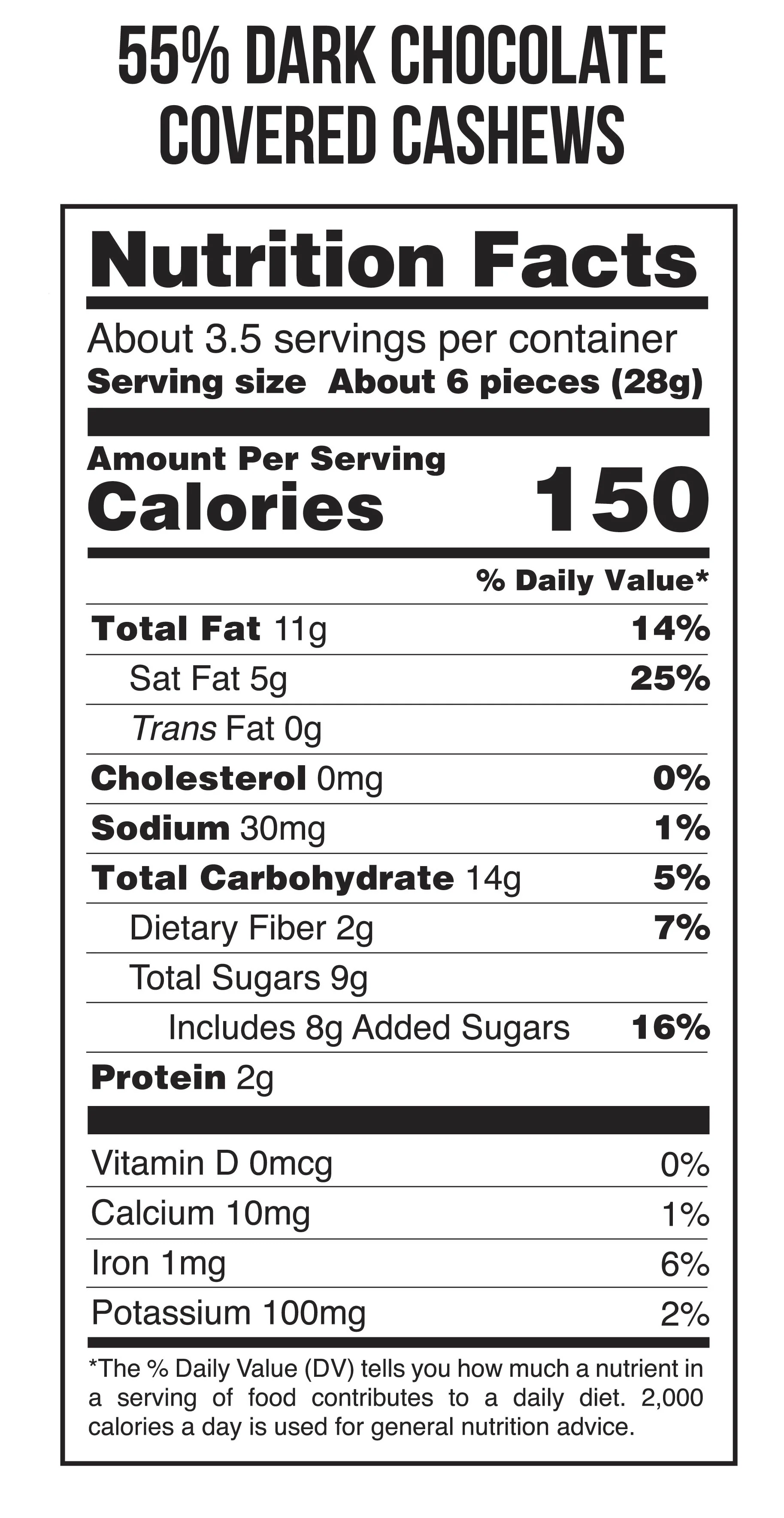 Fresh roasted organic cashews covered in 55% dark stone ground chocolate make an addictively delicious, sweet & crunchy treat. Perfect for snacking, sharing, and gifts!