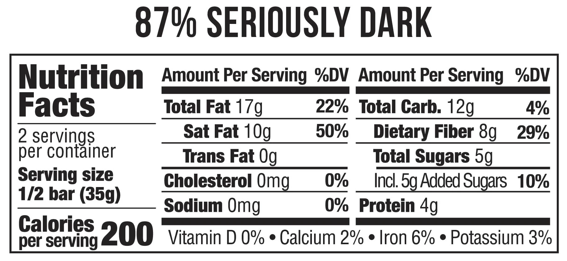 2.5 oz Dark Chocolate Bar. 87% Dark.